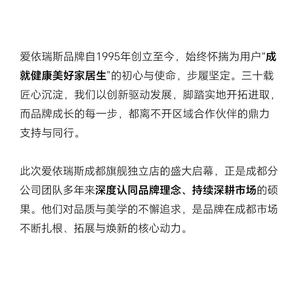 愛(ài)依瑞斯成都旗艦獨(dú)立店璀璨啟幕,共鑒軟體大家居藝術(shù)新境